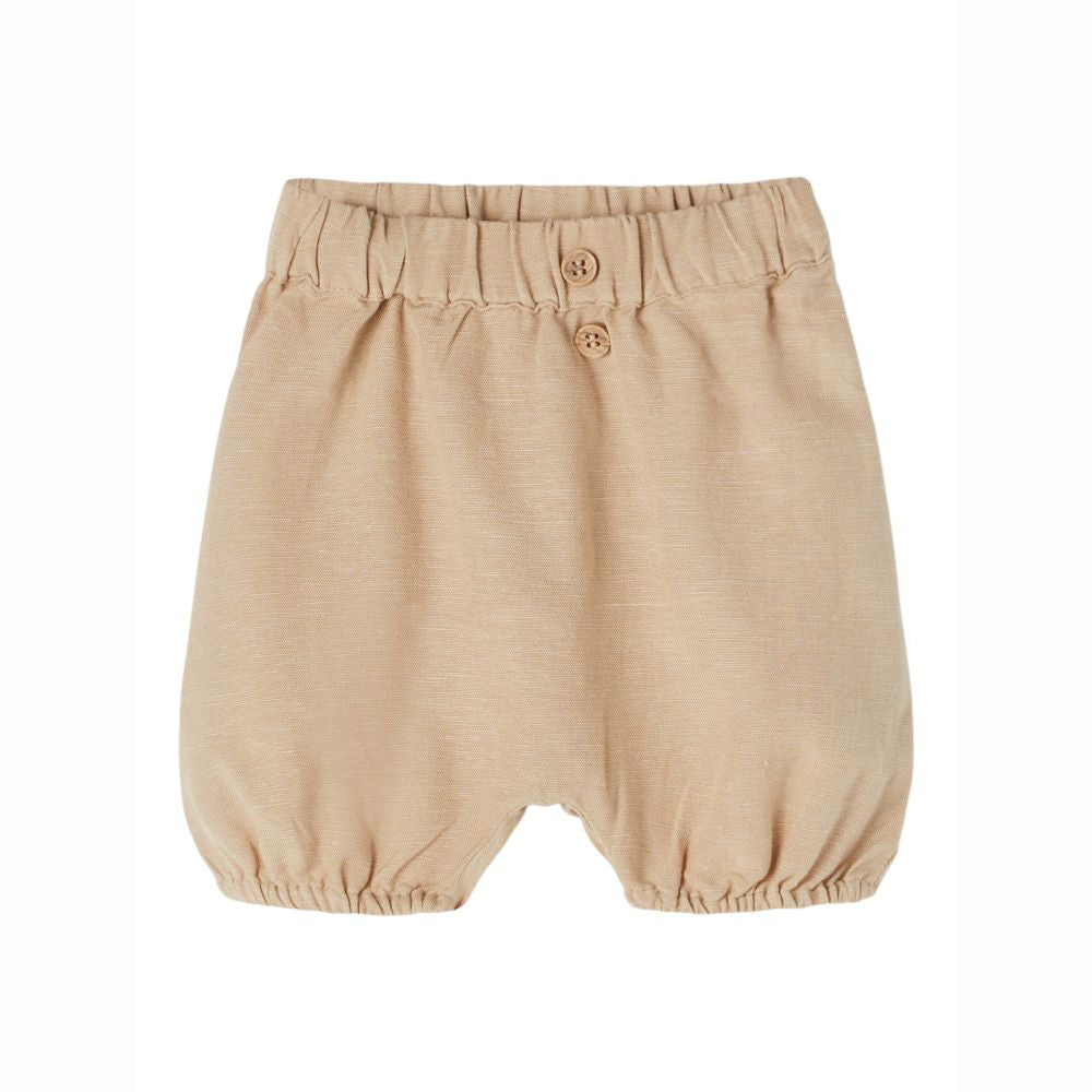 Bloomers effetto lino con bottoncini decorativi, elastico in vita e gamba arricciata.