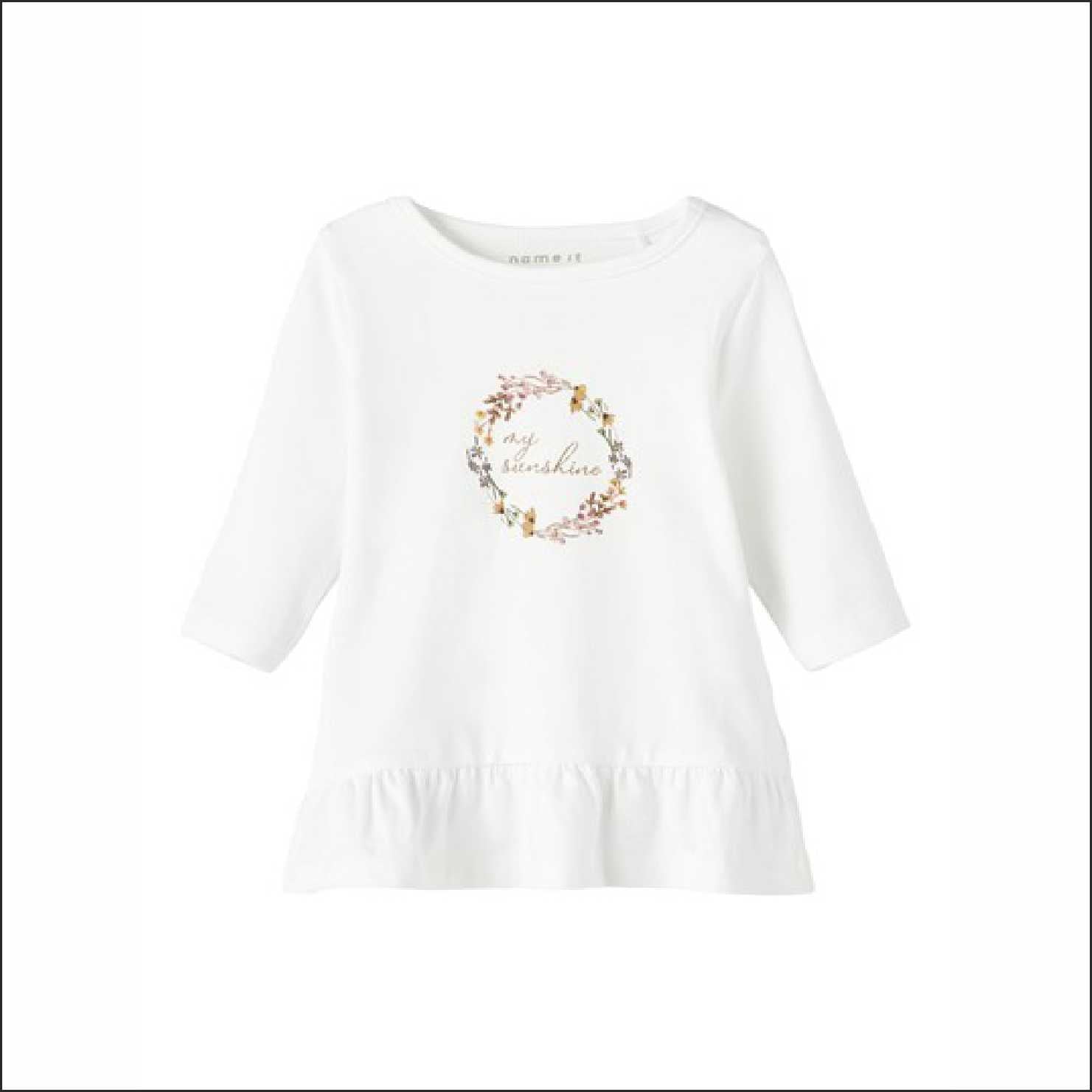 Maximaglia in cotone con balza sul fondo e leggings cipria a costine.