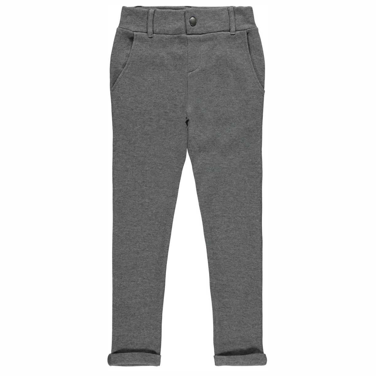 Pantalone elegante con finto bottone, tasche laterali e risvolto alla caviglia.