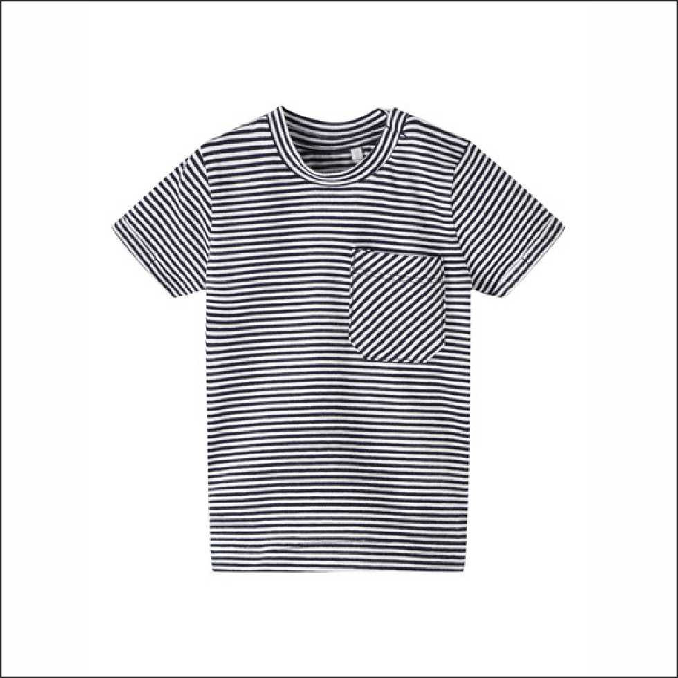 Completino con t-shirt con taschino e shorts con finti bottoni.